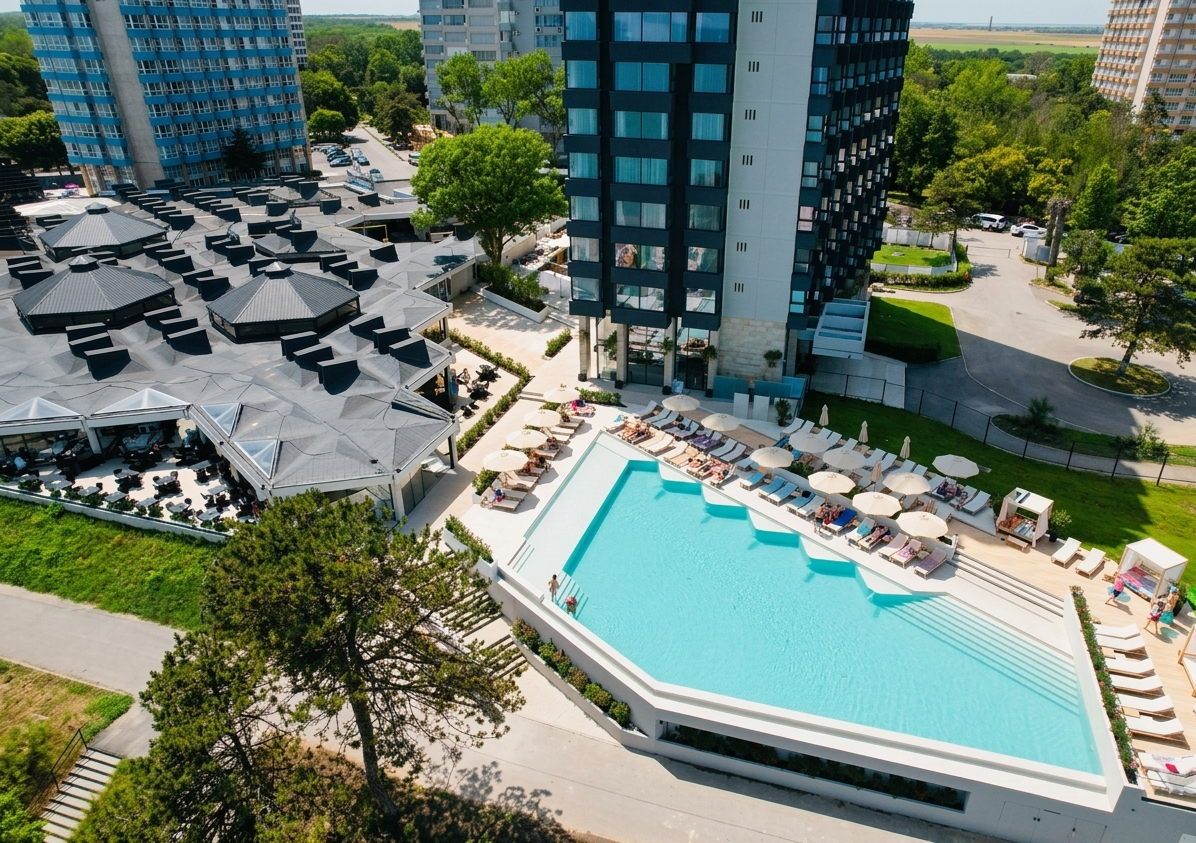 Steaua de Mare – Olimp Resort is perched on a dramatic cliff above the Black Sea, where contemporary architecture and natural surroundings create a calm, open atmosphere closely connected to the water. Newly refurbished interiors, an infinity-style pool, a private beach and an attentive team make every stay feel effortless.